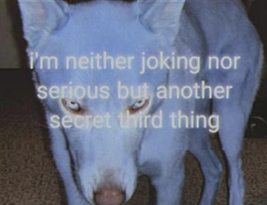 One of my favorite memes started with a picture of a blue dog. Someone got the idea to place an odd bit of personal testimony over the dog’s seemingly very intense face: “i’m neither joking nor serious but another secret third thing.” The “secret third thing” concept proved inspiring; it became what is known as a “snowclone,” or a simple verbal formula open to endless variation. People started to tweet their own versions, only now without the dog picture, and not always polite: “not an alcoholic nor sober but a secret third thing,” “not polyamorous or monogamous but a secret third thing,” “u are not a more secret complicated third thing you are 32.”