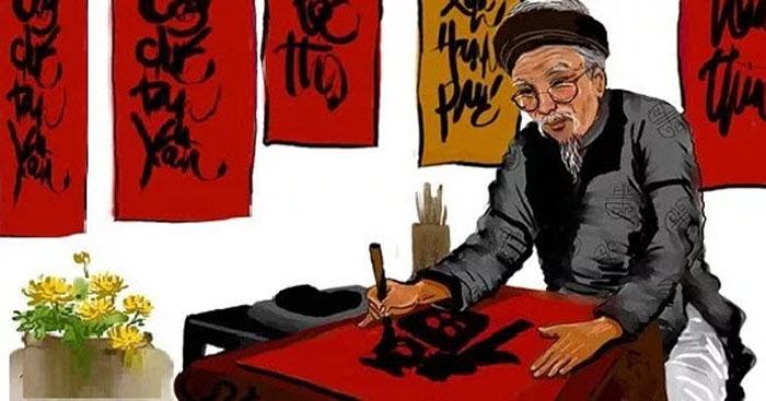 Nhưng mỗi năm mỗi vắng Người thuê viết nay đâu? Giấy đỏ buồn không thắm Mực đọng trong nghiên sầu…