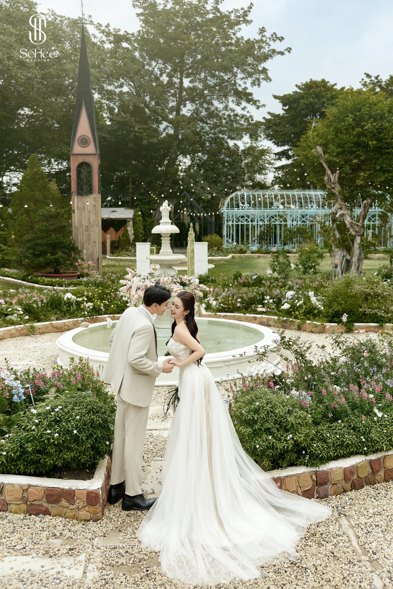 Lấy cảm hứng từ các khu vườn Ý, đường đi rải đầy hoa và đài phun nước trung tâm là những điểm nhấn ấn tượng. Bối cảnh này mang đến nét lãng mạn và tráng lệ, tạo ra hình ảnh như trong những câu chuyện cổ tích.